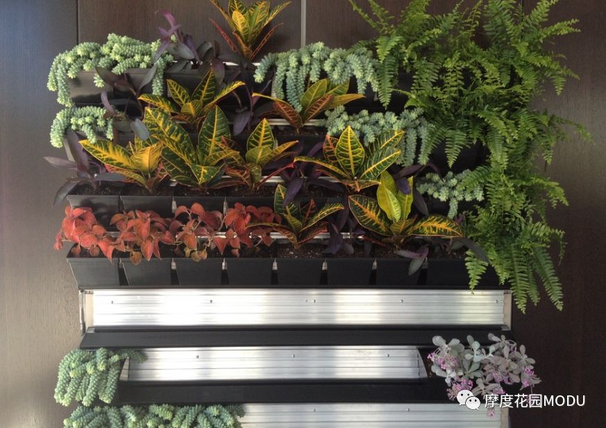 · 在墙上的壁挂花盆里种上蔓生的植物,形成一个绿色的瀑布